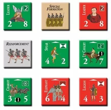 ゲーム・スケール: マップ上の6角形のマス目(ヘクス)は、戦闘の種類に応じて100〜200ヤードを表します。各ゲーム・ターン(GT)は、戦闘の激しさに応じて15〜45分に相当します。ユニットは3〜5個のローマ軍団、もしくはそれに相当する部隊、あるいは蛮族の集団を表します(時代と軍の効率に応じて1,000〜3,000人)。リーダーは、1人の偉大な指揮官、族長、あるいは軍団長など上位の指揮官を表しています。