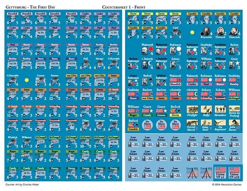 「ゲティスバーグ」の戦い初日をBlind Swordsシステムで再現します。シナリオは全部で4本。専用マップを用いるミニシナリオの他、フルマップを用いる午前だけ、終日のシナリオが用意されています。